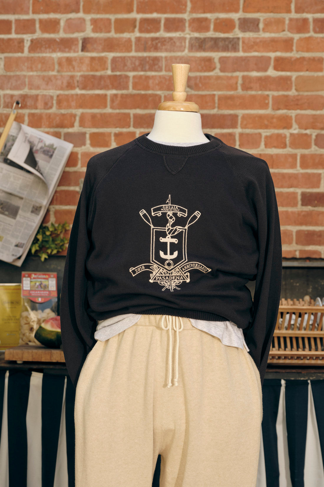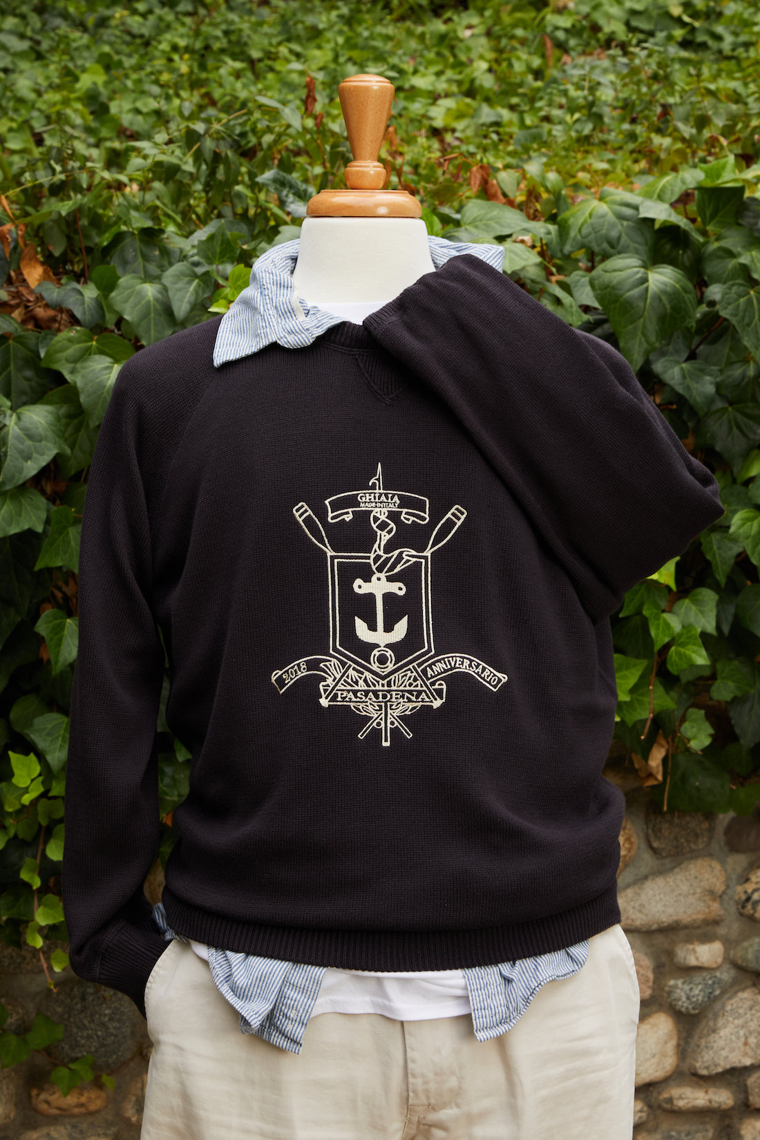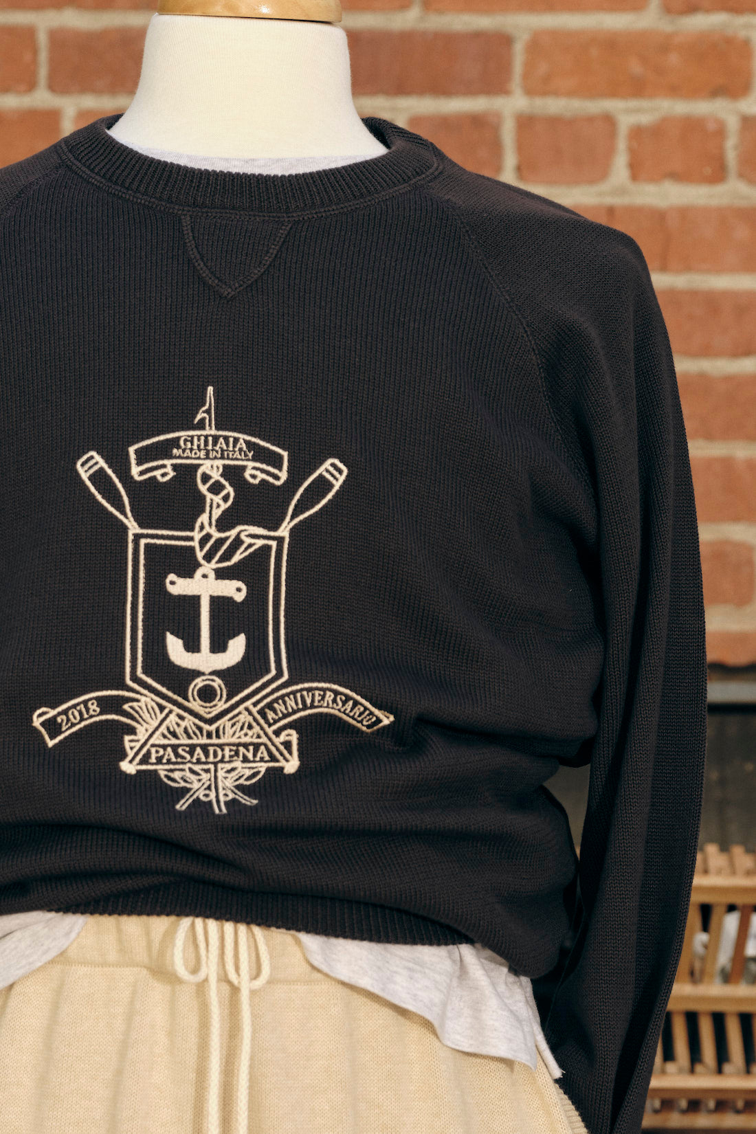 100% very high quality cotton raglan crewneck sweater with long sleeves, ribbed neck, cuffs and hem. This item is totally knit - half British rib to be exact, with a soft color contrast embroidery of the Ghiaia crest. Keeps you warm in the winter, but light enough to carry you through summer. It's a great year-round sweater. Our sweaters fit closer to American sizing, so you don't have to worry about the sleeve or hem length being short. We did this on purpose, to ensure each garment makes you feel your best. Fatto in Italia.
