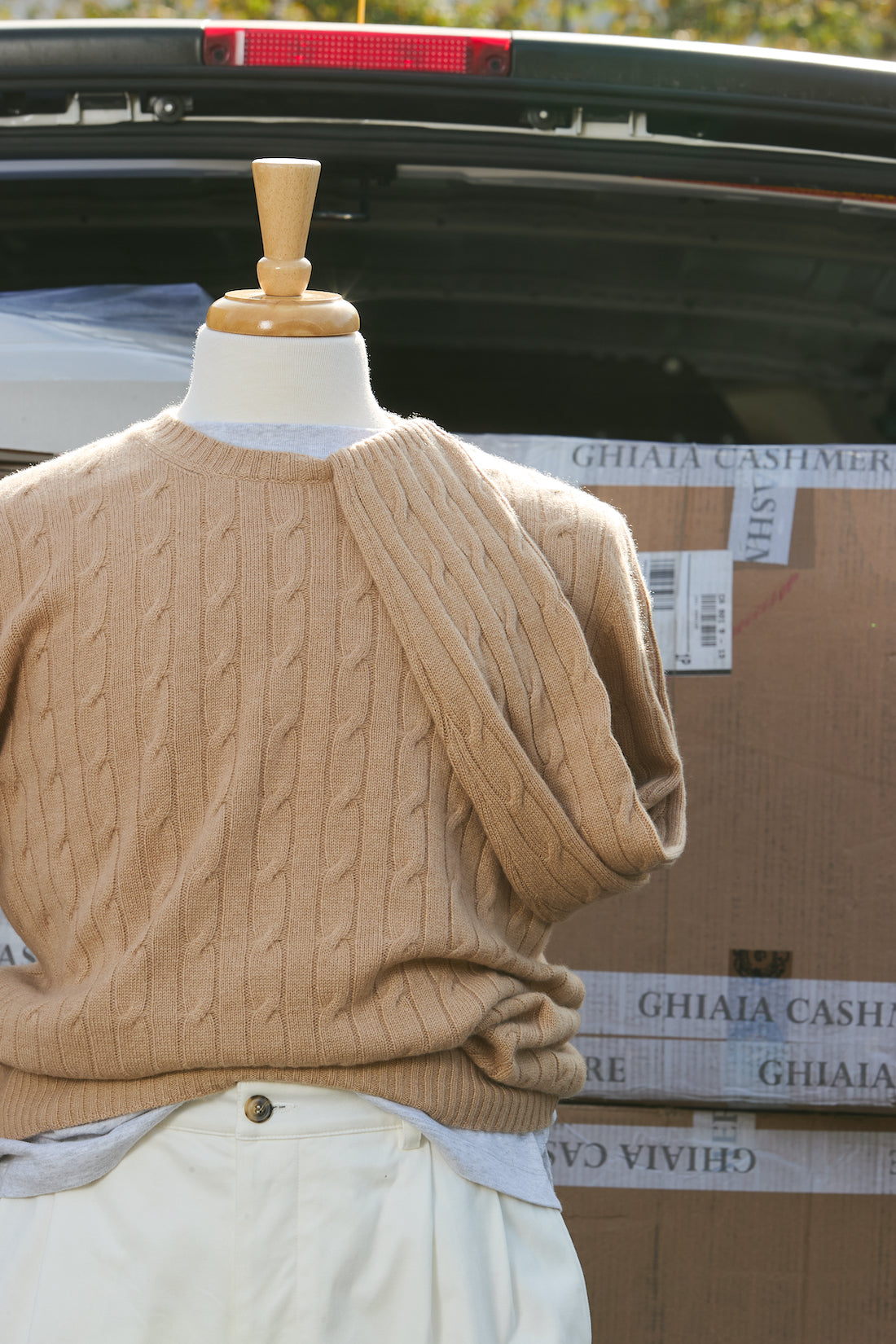 100% cashmere cable (Treccia) sweater with long sleeves, crew neck, cuffs and hem. Our sweaters fit closer to American sizing, so you don't have to worry about the sleeve or hem length being short. We did this on purpose, to ensure each garment makes you feel your best. Available in 4 colors. Fatto in Italia.