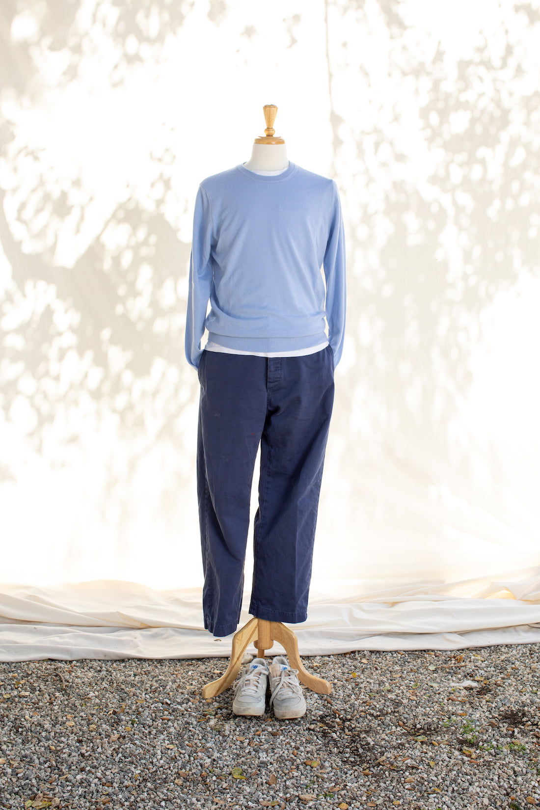 100% cashmere crewneck sweater with long sleeves, ribbed neck, cuffs and hem. Our sweaters fit closer to American sizing, so you don't have to worry about the sleeve or hem length being short. We did this on purpose, to ensure each garment makes you feel your best. Fatto in Italia.