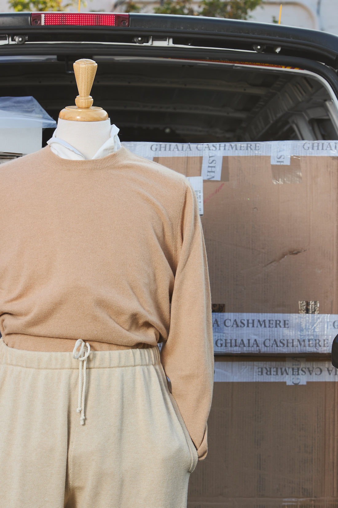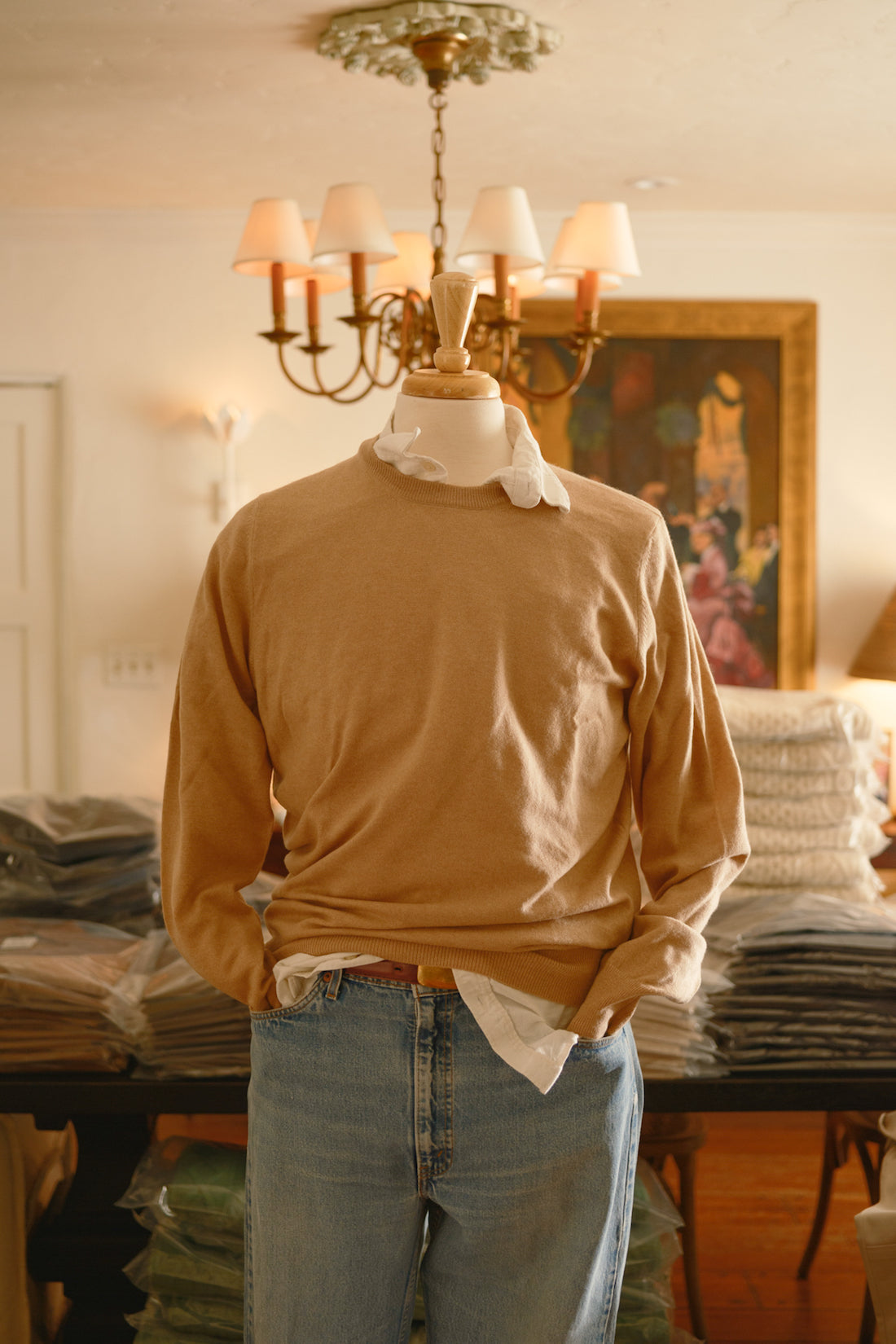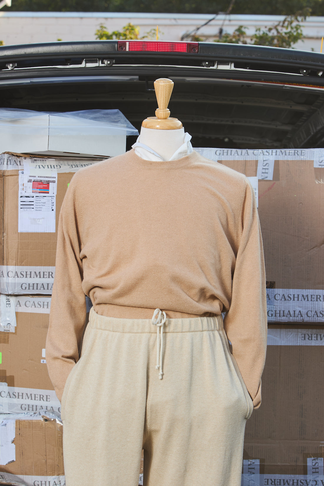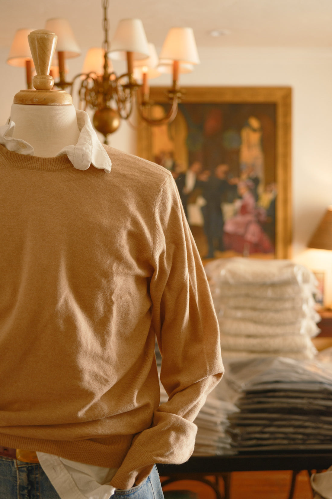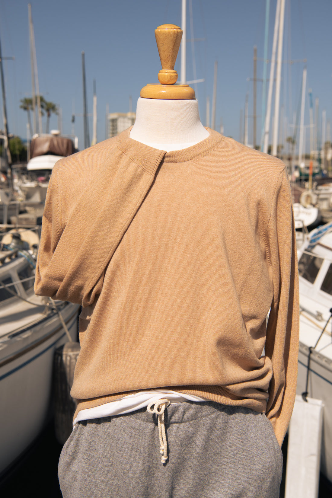 100% cashmere crewneck sweater with long sleeves, ribbed neck, cuffs and hem. Our sweaters fit closer to American sizing, so you don't have to worry about the sleeve or hem length being short. We did this on purpose, to ensure each garment makes you feel your best. Fatto in Italia.