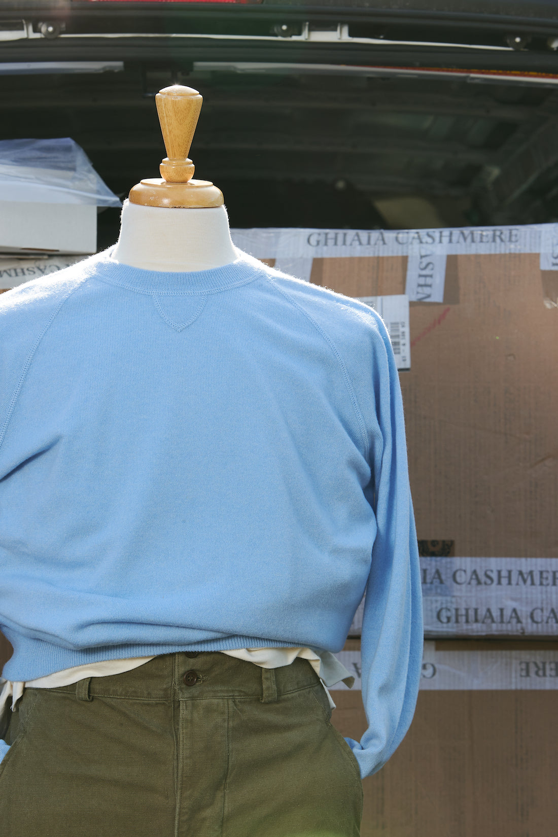 100% cashmere raglan crewneck sweater with long sleeves, ribbed neck, cuffs and hem. The sweater features a "raglan" sleeve for a more sporty look. Our sweaters fit closer to American sizing, so you don't have to worry about the sleeve or hem length being short. We did this on purpose, to ensure each garment makes you feel your best. Fatto in Italia.