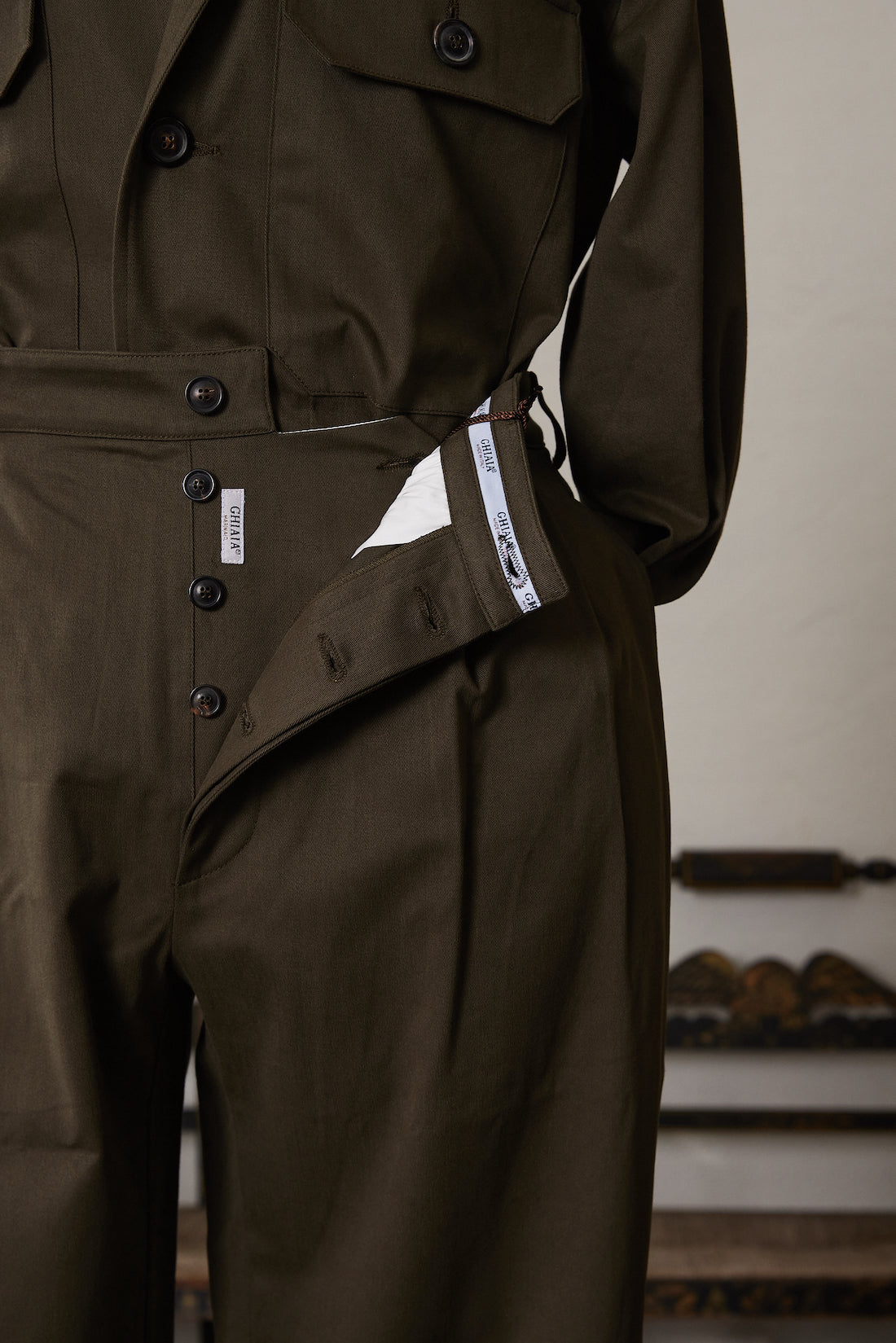 Cotton Ghiaia trousers are from cotton-blend twill in a high waist double pleated silhouette. Classic look, four pockets construction, and are finished with Ghiaia genuine horn buttons. FATTO IN ITALIA DA MATERIALI ITALIANI.