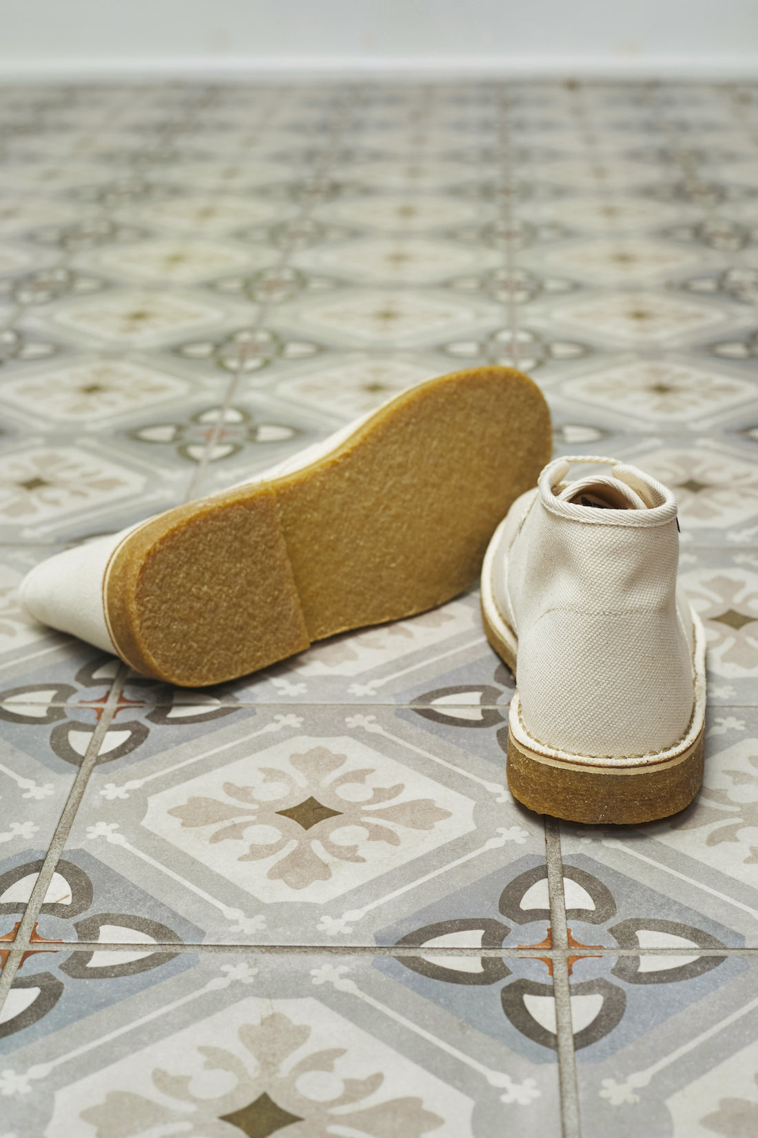 These Canvas Chukka desert boots have been handcrafted Italy. Inspired by a tactical military footwear reinterpreted in a timeless iconic shape. They are set on comfortable, durable tonal and crepe sole and completely deconstructed for a natural look. FATTO IN ITALIA.