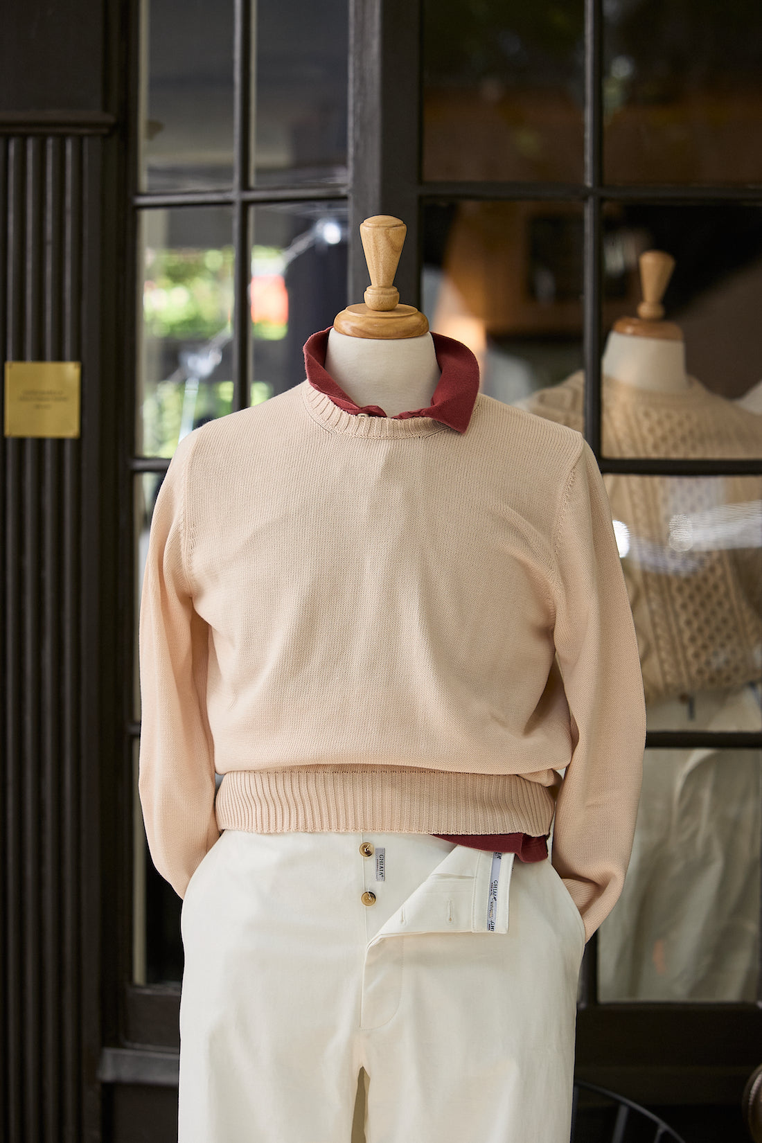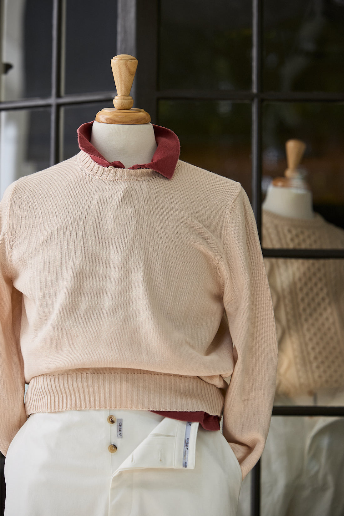 100% very high quality cotton crewneck sweater with long sleeves, ribbed neck, cuffs and hem. This item is totally knitted - half British rib to be exact. Keeps you warm in the winter, but light enough to carry you through summer. It's a great year-round sweater. Our sweaters fit closer to American sizing, so you don't have to worry about the sleeve or hem length being short. We did this on purpose, to ensure each garment makes you feel your best. Available in 6 colors. Fatto in Italia.