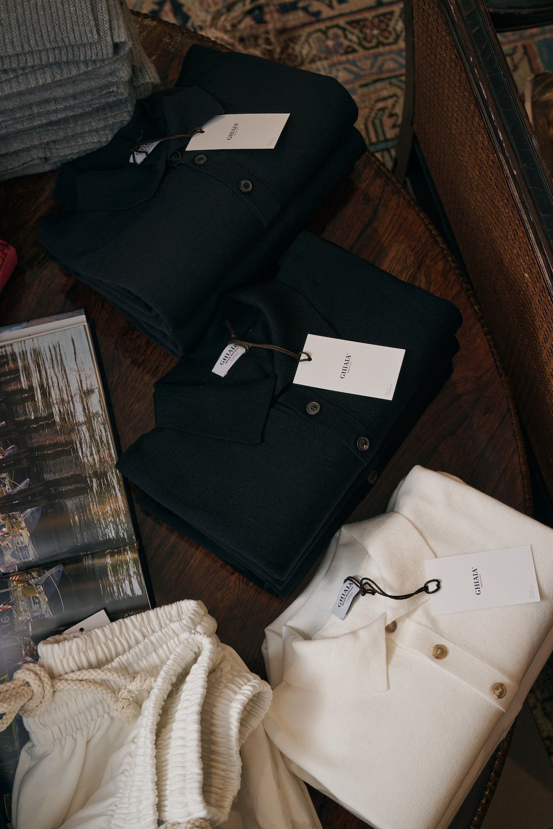 This is a very sophisticated interpretation of the polo shirt in a fine gauge soft cotton. Timeless knitted and perfect to be layered under your blazer or sweater. Impeccable drape and fit, subtle feeling. Short sleeves, finished with dark horn buttons, perfect length available in three colors. Fatta in Italia da materiali italiani.