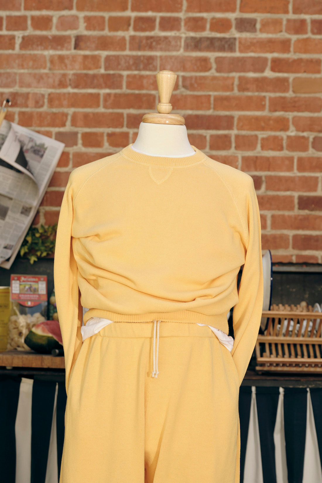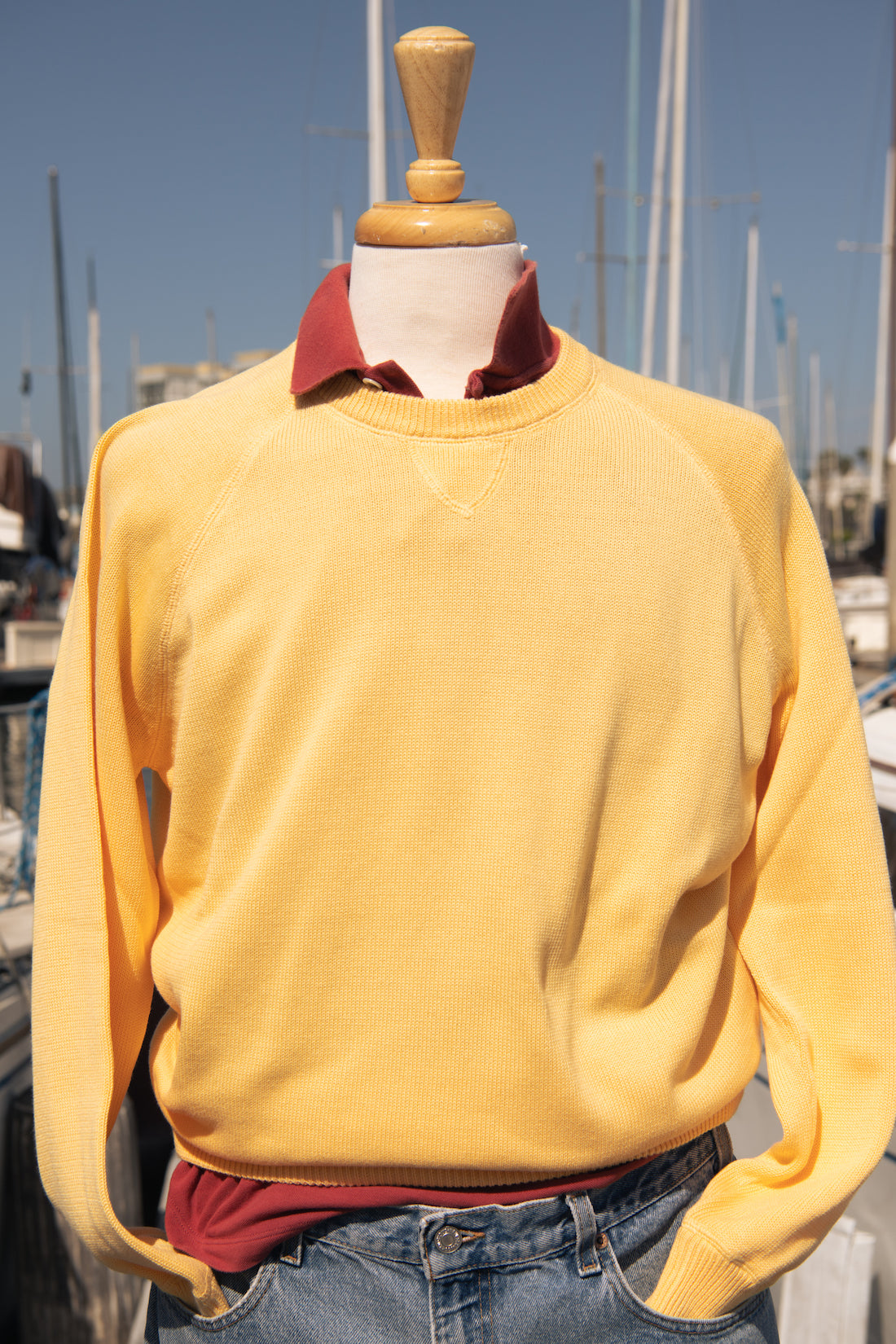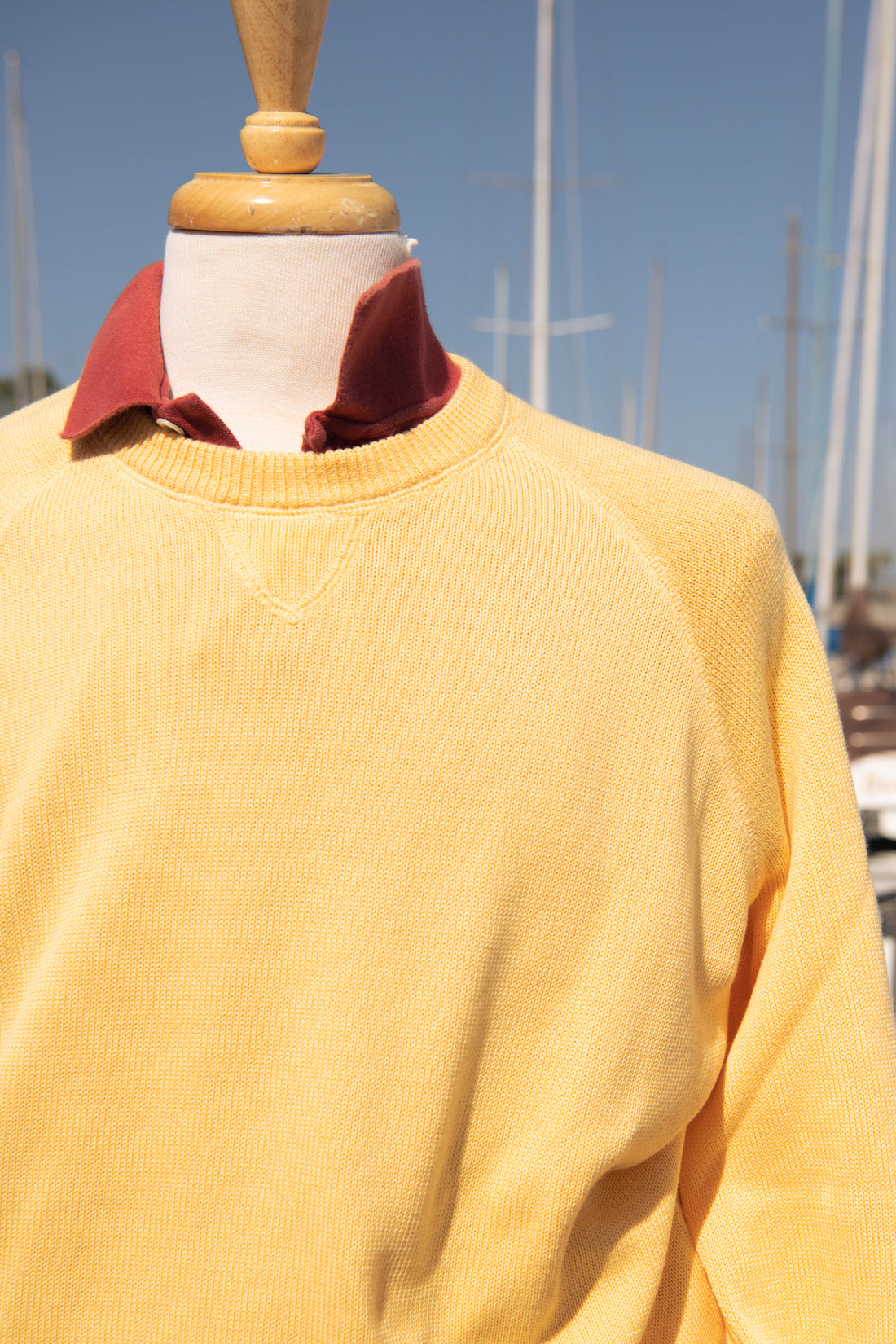 100% very high quality cotton raglan crewneck sweater with long sleeves, ribbed neck, cuffs and hem. This item is totally knit - half British rib to be exact. Keeps you warm in the winter, but light enough to carry you through summer. It's a great year-round sweater. Our sweaters fit closer to American sizing, so you don't have to worry about the sleeve or hem length being short. We did this on purpose, to ensure each garment makes you feel your best. Fatto in Italia.
