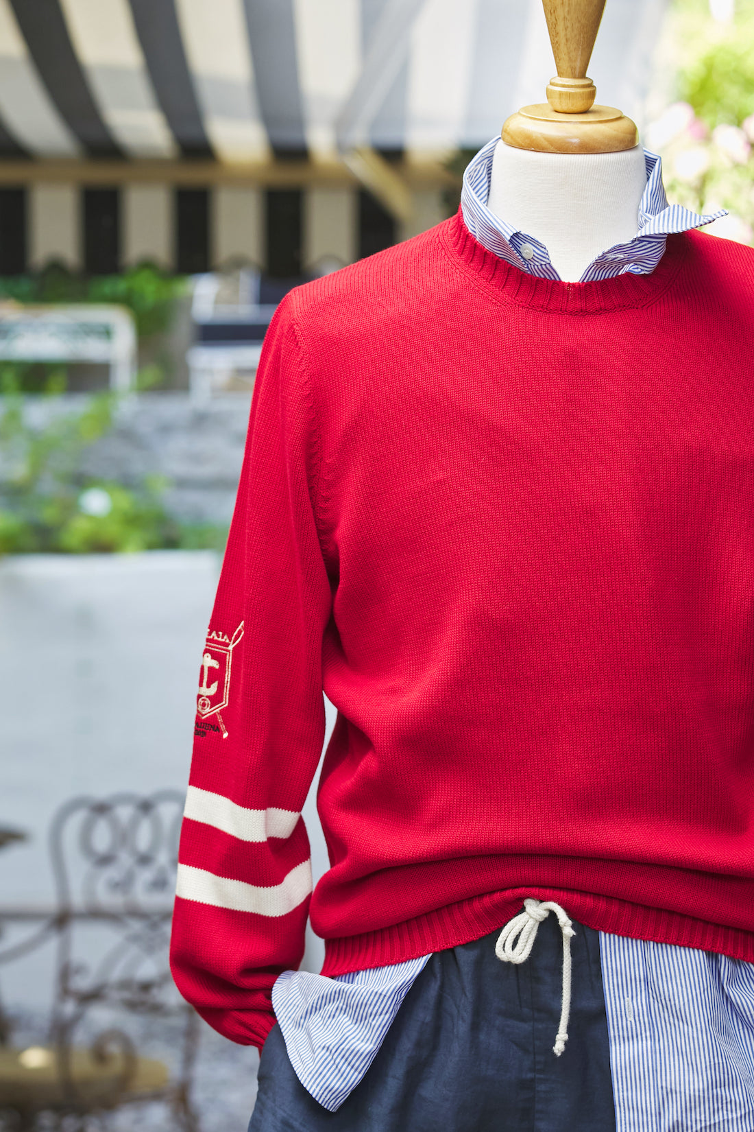 100% very high quality cotton crewneck sweater with long sleeves, ribbed neck, cuffs and hem. This item is totally knit - half British rib to be exact, with a soft color contrast embroidery of the Ghiaia regatta bands and crest. Keeps you warm in the winter, but light enough to carry you through summer. It's a great year-round sweater. Our sweaters fit closer to American sizing, so you don't have to worry about the sleeve or hem length being short. We did this on purpose, to ensure each garment makes you feel your best. Fatto in Italia.