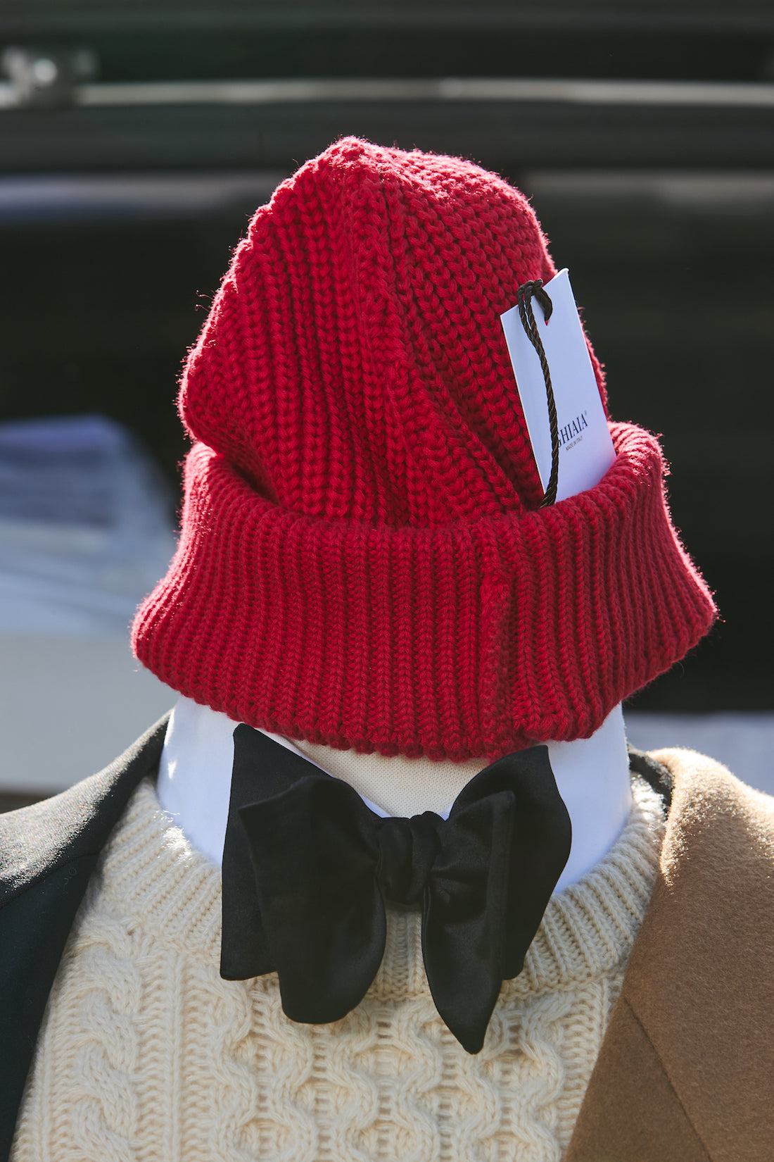 100% cotton ribbed-knit beanie. The knitting technique used for this piece is the English rib - "Maglia Inglese" - with double stitches to achieve a clear and visible striped pattern. This technique gives a fuller and thicker knitted product. This is our first cold weather accessory. Available in 5 colors. Fatto in Italia.