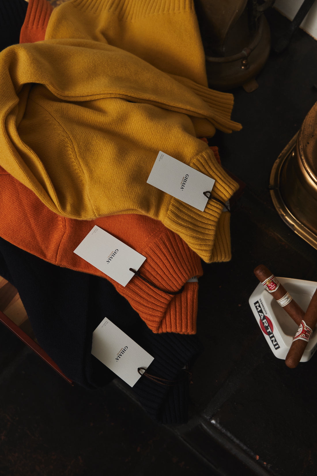 100% cashmere two ply mock neck sweater with long sleeves, ribbed neck, cuffs and hem. Our sweaters fit closer to American sizing, so you don't have to worry about the sleeve or hem length being short. We did this on purpose, to ensure each garment makes you feel your best. Available in three colors. Fatto in Italia.