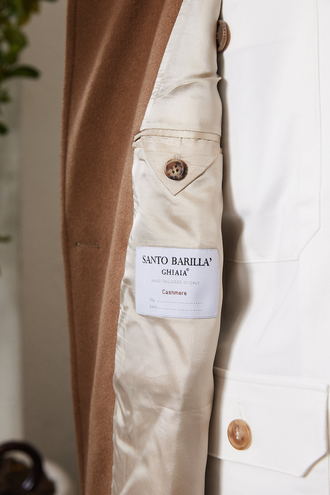 The Ghiaia Cashmere SARTORIA garments by Santo Barilla' Milano, are hand-cuts and expertly tailored by one of the best bespoke specialist in the world. This double-breasted overcoat has been crafted in Italy from the highest quality of brushed-cashmere, it will work with practically any outfit. The flawless construction will give you an accent of sophistication no matter what you're wearing. It has a smart, double-breasted front and satin-twill butterfly lining. FATTO IN ITALIA DA MATERIALI ITALIANI.