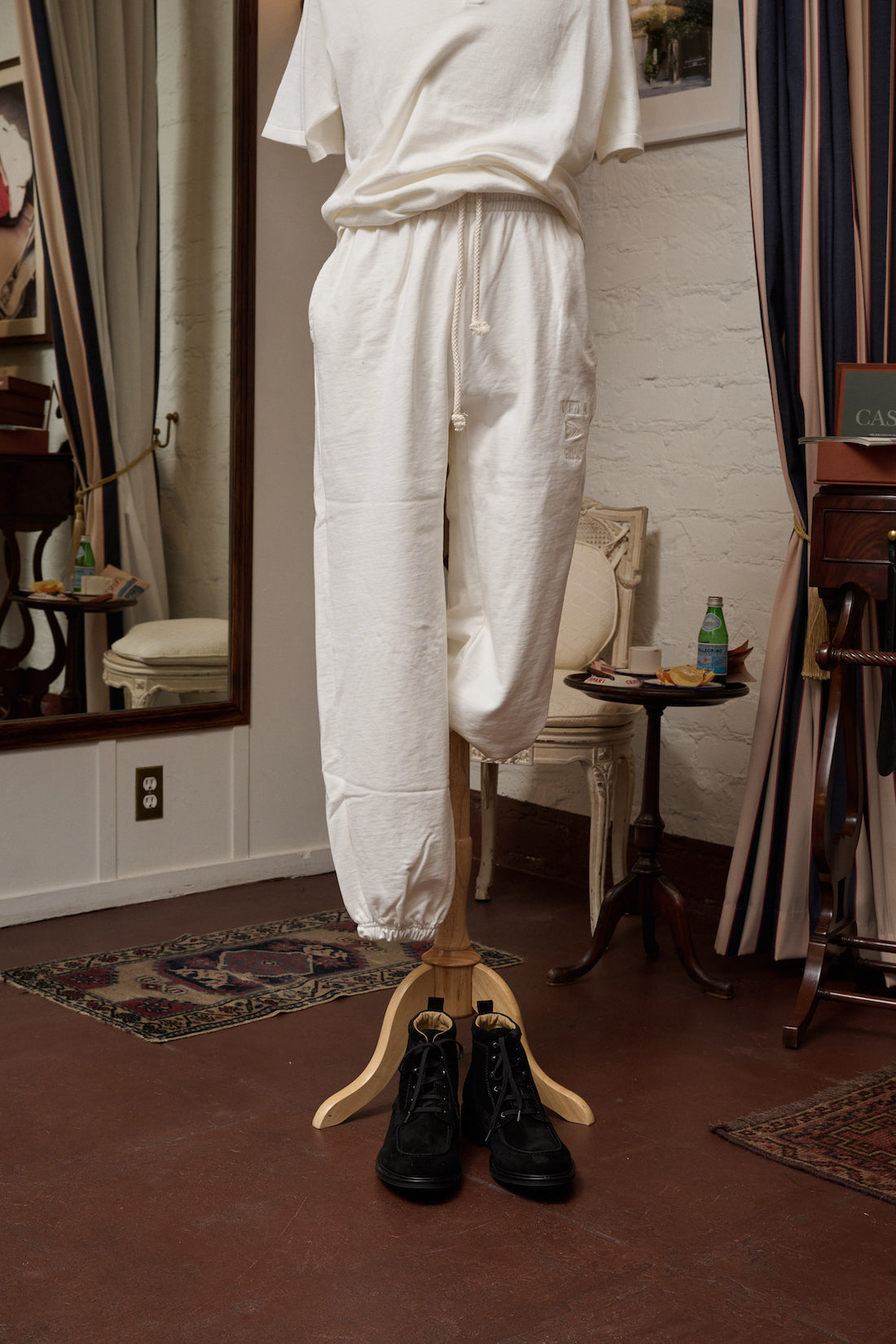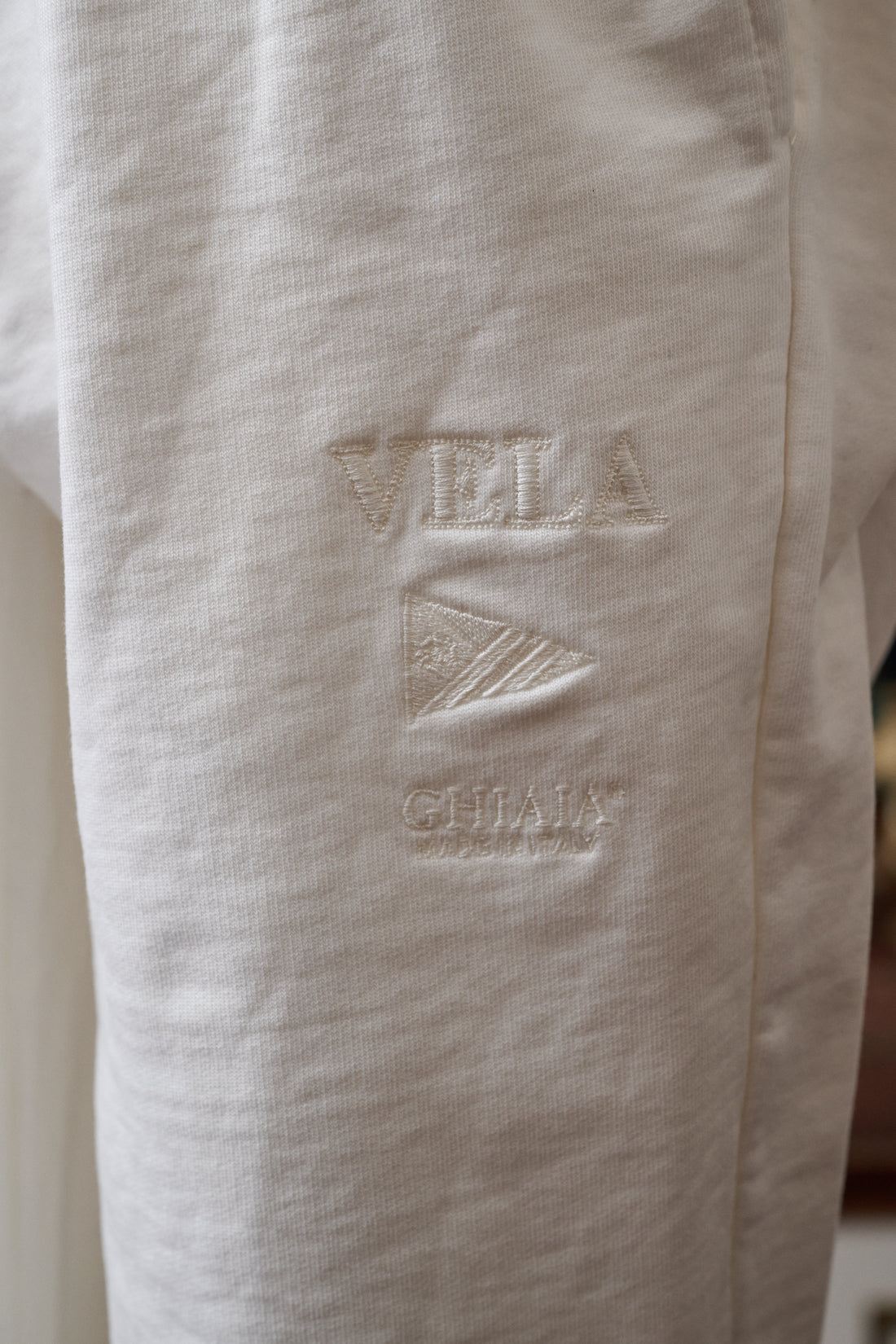 VELA Cotton sweatpants has been made in Italy from a 400gr. french terry cotton cloth soft, warm and breathable. Designed to both look and feel good. Embroidered tonal VELA logo, Two way zip closure at front nautical inspired drawstring, elasticated waistband & leg openings. Available in two colors. Wear it with the matching available sweats. Fatto in Italia da materiali italiani
