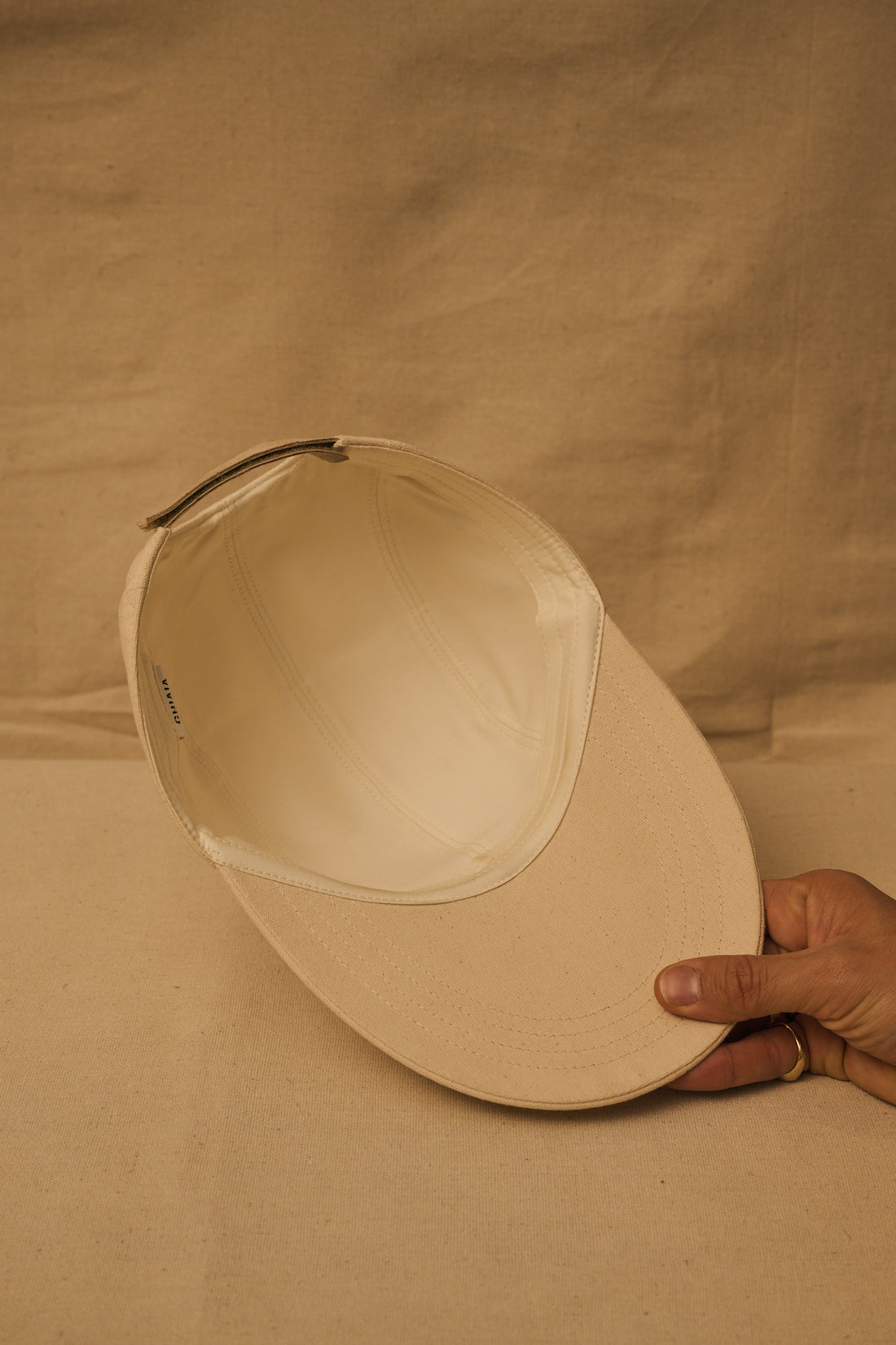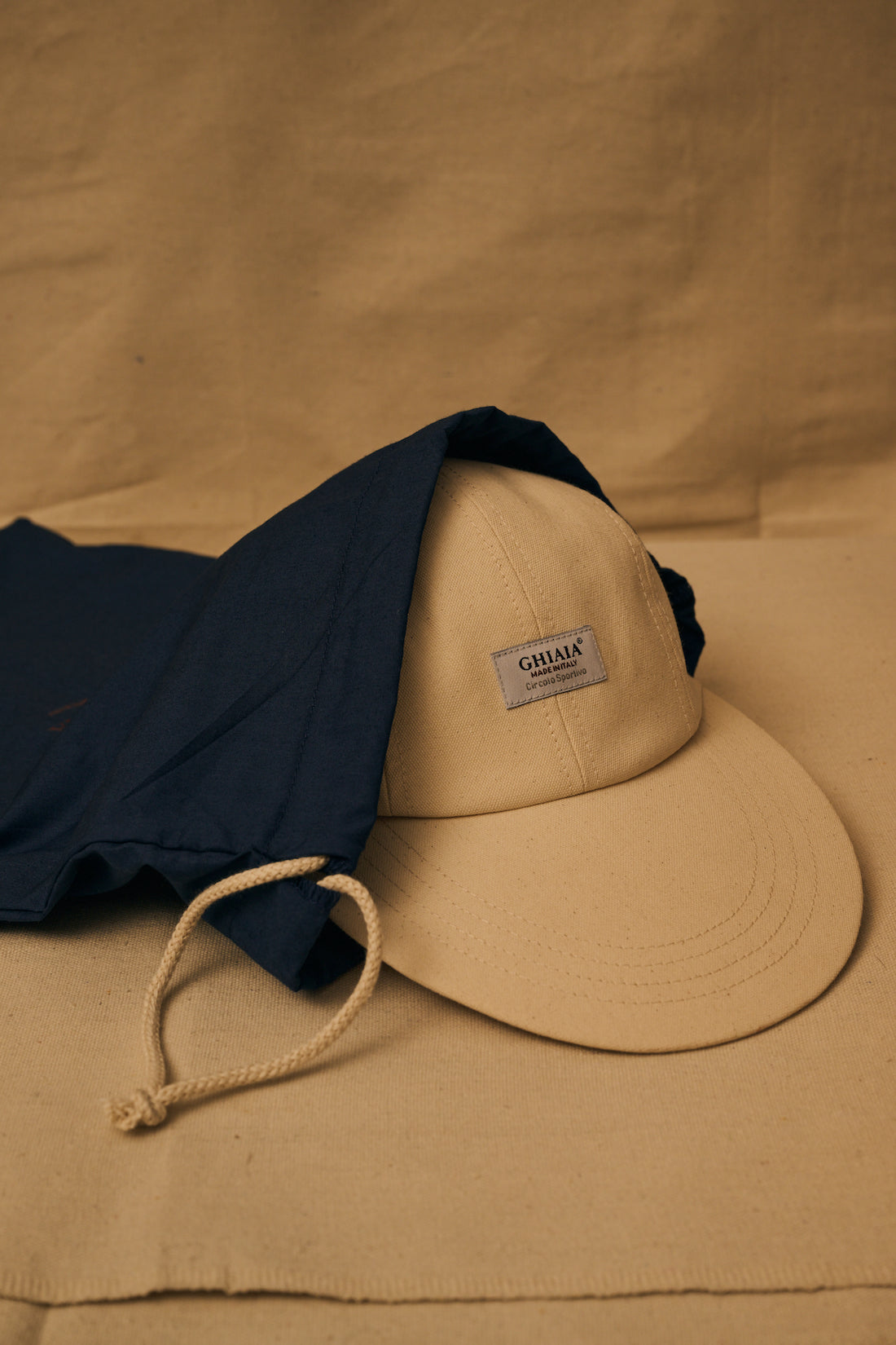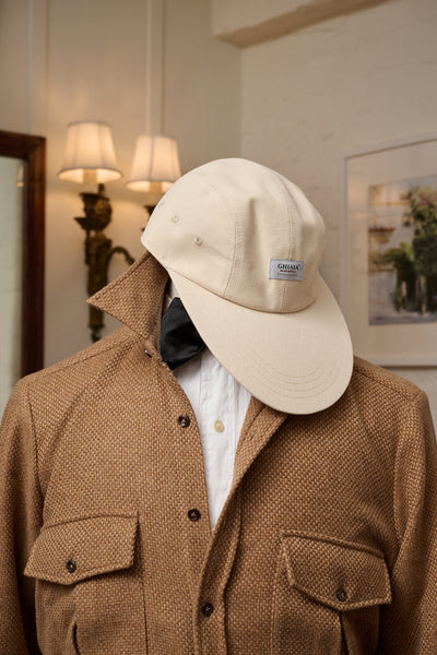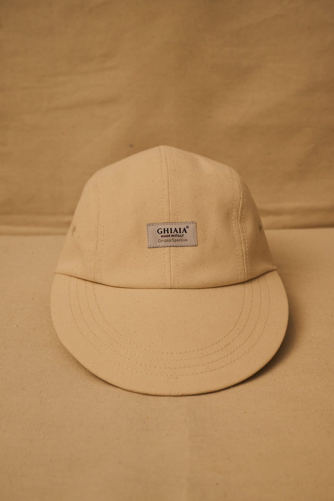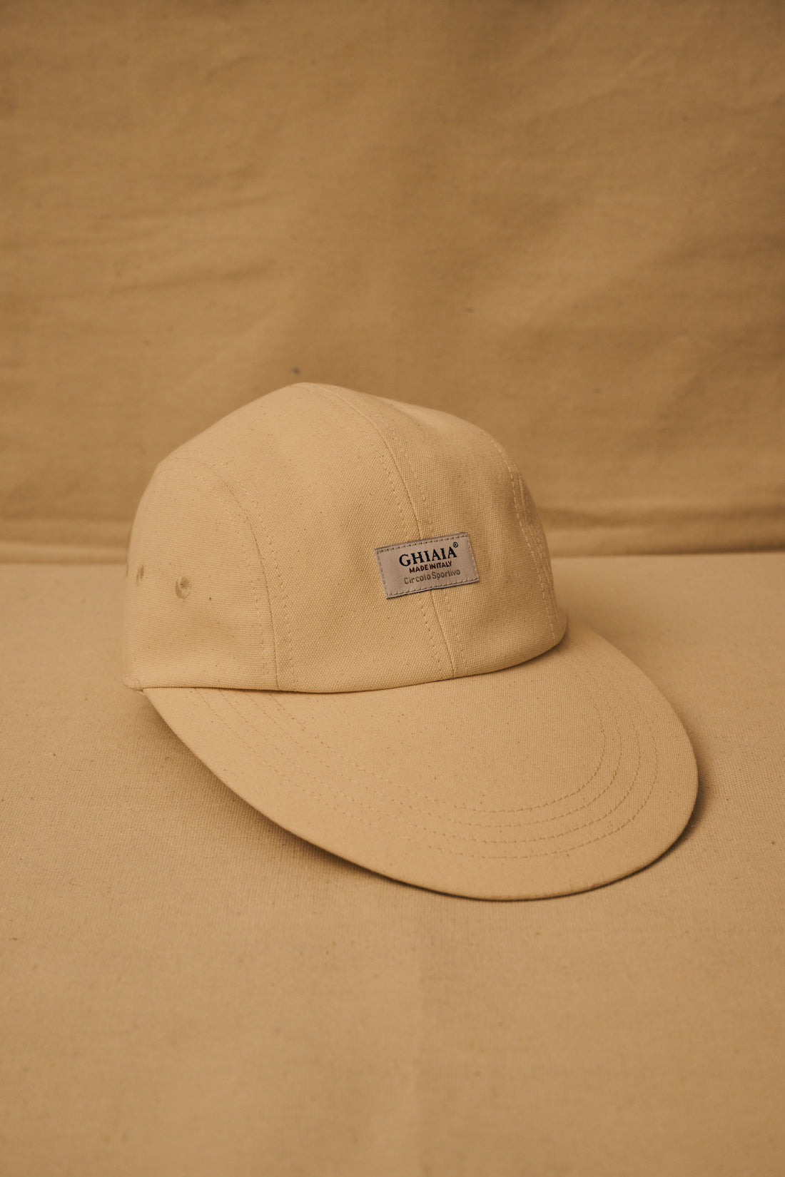 The Circolo Sportivo Duck Canvas Ghiaia cap is constructed of durable cotton canvas, this duck bill cap features a tonal bill, interior lining, adjustable fits most men head circumference. Ghiaia Circolo Sportivo new label applied. Available in a sophisticated sand color. Fatto in Italia da materiali italiani.