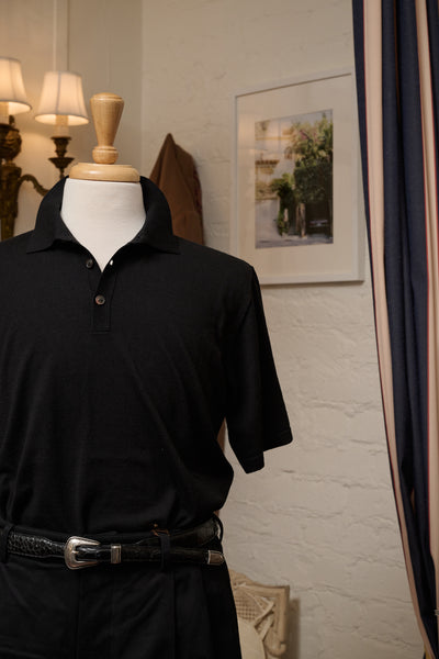 This is a very sophisticated interpretation of the polo shirt in a fine gauge soft cotton. Timeless knitted and perfect to be layered under your blazer or sweater. Impeccable drape and fit, subtle feeling. Short sleeves, finished with dark horn buttons, perfect length available in three colors. Fatta in Italia da materiali italiani.