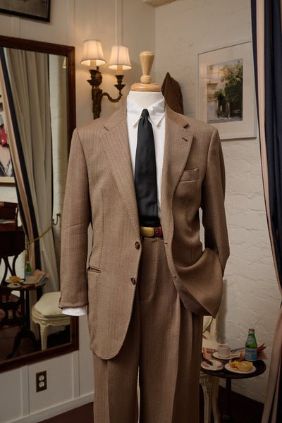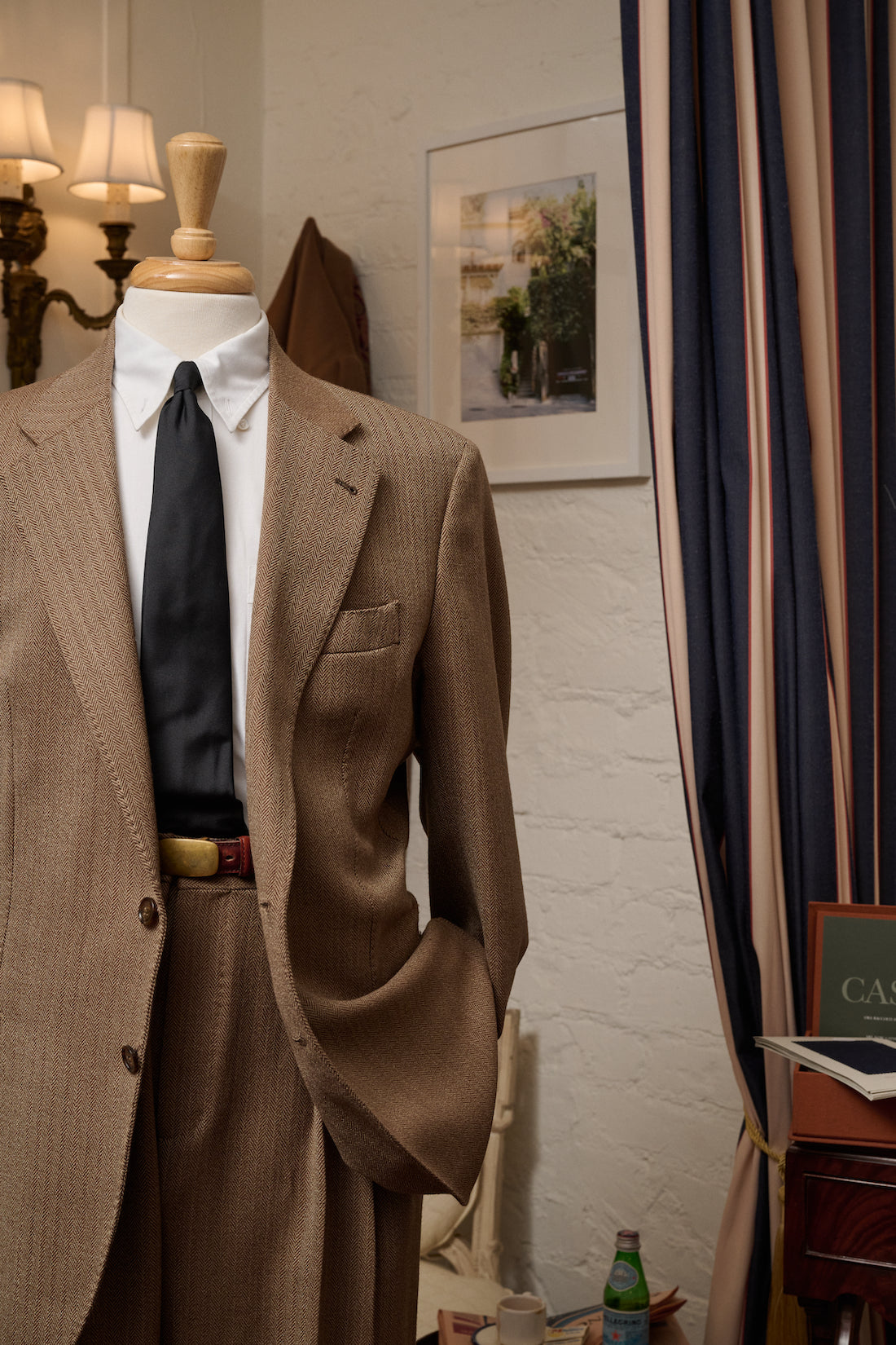 Bespoke Single Breasted Suit , fully hand tailored available only by appointment. Available in different colors and variants. Fatto a mano in Italia by Santo Barilla' Milano. Info@ghiaiacashmere.com for appointments.